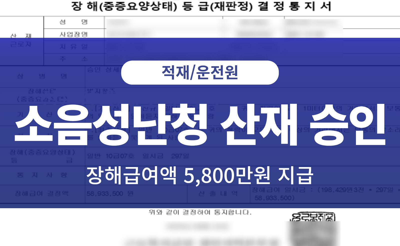 소음성난의이 발병이 상당인과관계가 있다고 판단되어 산재승인 되었으며,