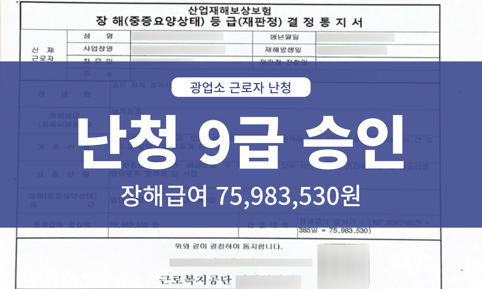 근로자는 장해등급 제9급 판정을 받으셨습니다.