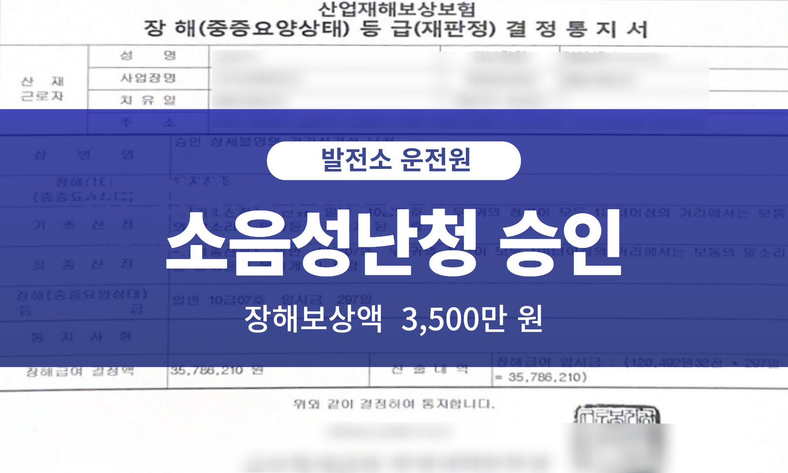 발전소 운전공에게 발생한 소음성난청 장해 보상 사례
